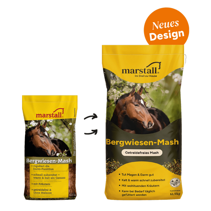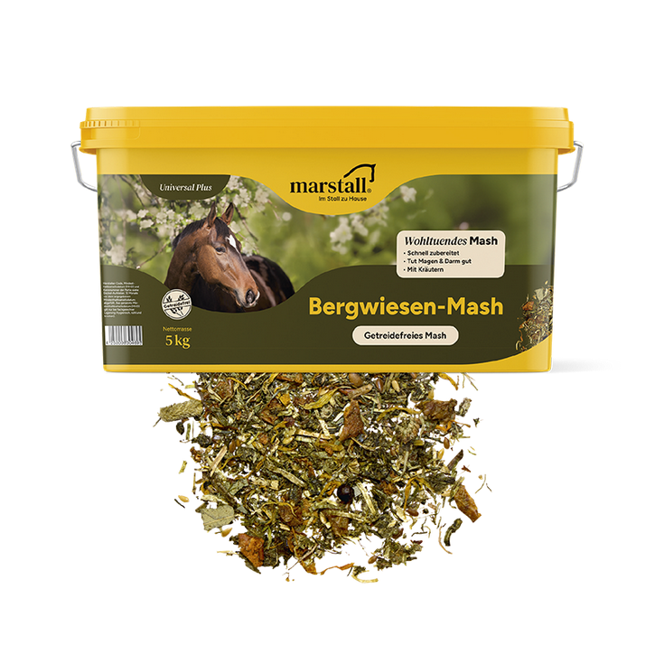 Marstall Bergwiesen-Mash on teraviljavaba ja madala suhkrusisaldusega alternatiiv traditsioonilisele mashile. On mõeldud seedeprobleemidega, tundlikele ja allergilistele hobustele. Samuti haigusest taastuvatele hobustele. Selle ülimalt kergesti seeditav koostis on soolesõbralik, soodustab seedimist ja ergutab isu – ilma teravilja, melassi või kunstlike suhkrute, kliide ja maitseaineteta. Ilma vitamiinide ja mineraalaineteta.