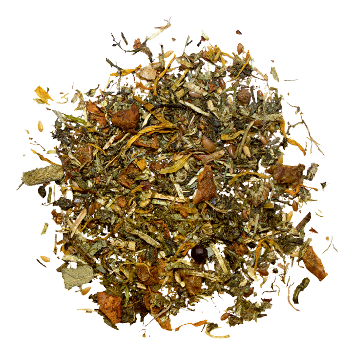 Koostis: püsirohumaa saadused, kuivatatud 35,5%, purustatud linaseemned 22,5%, purustatud õunad 20%, linaseemned 10%, kuivatatud maitsetaimed (nõges, koriander, fenkoli, eukalüpt, hibiskus, tüümian, kummel, lambaläätsed, kaselehed, aniis, köömen, männiokkad, salvei, küüslaugu graanulid) 2%, raf.rapsiõli 3%, kaltsiumkarbonaat, õlleraba, õllepärm 0,8%, saialille õied, naatriumkloriid.