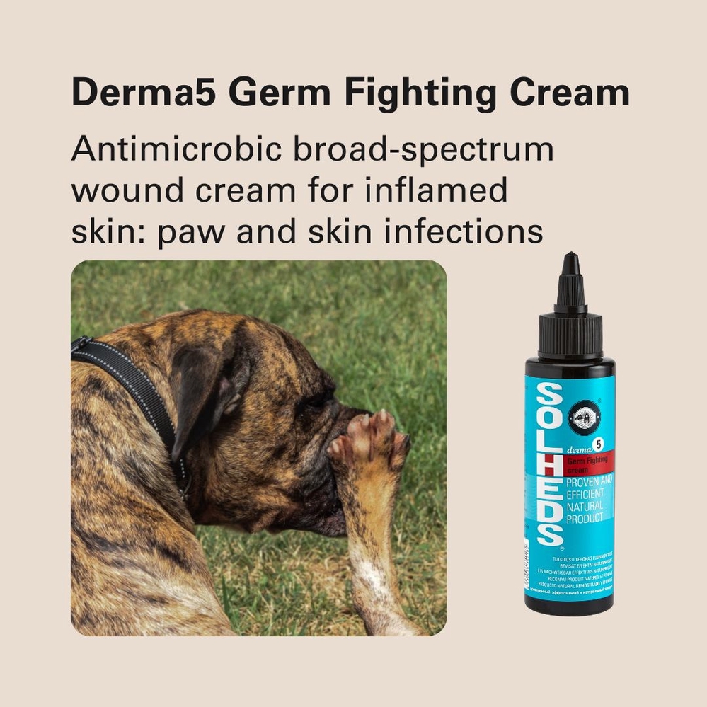 Derma5 kreem on valmistatud puhastest ja looduslikest koostisosadest. Derma5 on testitud ja efektiivne, hoidmaks kontrolli all nahainfektsioone hobustel ja koertel (näiteks prei, märg ekseem) ning naha kõvastumist (näiteks elevandinahk). Kreemis sisalduvad naturaalsed eeterlikud õlid aitavad vähendada nahakahjustusi. Derma5 kreem toetab naturaalsete eeterlike õlide ja oomega 3, -6, -7 ja -9 rasvhapetega naha uuenemist. Ühtlasi aitab kreem pehmendada koorikuid ja arme. Kreemis sisalduvad eeterlikud õlid teevad ravitud koha lakkumise koerte jaoks tihti ebamugavaks. Täiendavat abi nahaprobleemide korral võib leida teistest Derma sarja toodetest.
