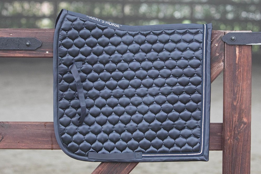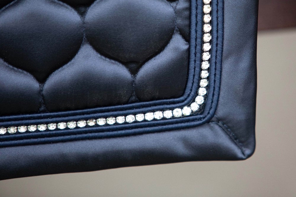 Satiinist valtrp nööri ja kristallireaga valtrapi tagaküljel. Sadulavöö ja sadula-aasad ning jaheda võrkkangaga vooder.