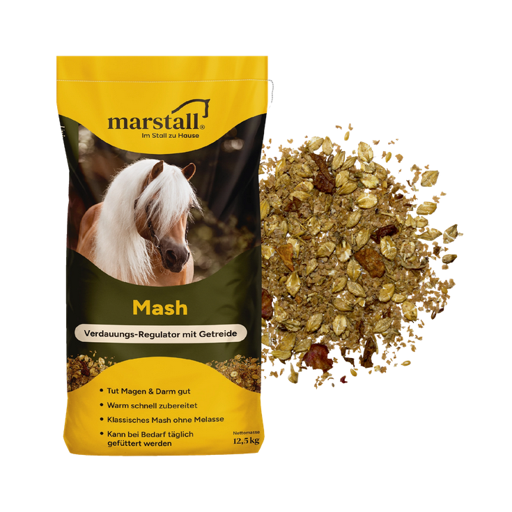 Marstall Mash on praktiline segu terve seedimise ja kauni läikiva karvkatte jaoks. Retsept põhineb tõestatud traditsioonilistel koostisosadel, mida on pidevalt arendatud. Marstall Mash ergutab söögiisu ja seedimist ning on seetõttu ideaalne valik hobustele, kes on kehvas konditsioonis või pirtsakad sööjad. Vanemad hobused saavad kasu selle paksust konsistentsist. Marstall Mash sobib eriti hästi kasutamiseks hobustel pärast füüsilist ja vaimset pinget. Suurim eelis on selle lihtne valmistamine ja lühike leotusaeg – ilma keetmiseta!