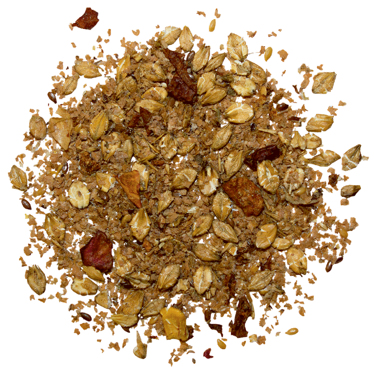 Koostis: oder (helbed) 50%, nisuklii 15%, linaseemned 10%, purustatud linaseemned 10%, purustatud õunad 10%%, rafineeritud rapsiõli 2%, kaltsiumkarbonaat, naatriumkloriid, lambalääts, suhkruleht.