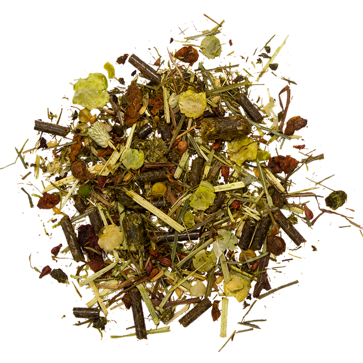 Koostis: Kuumkuivatatud hein, hernehelbed, linaseemnekook, kuivatatud purustatud viinamarjad, avatud linaseemned, taimeõli (linaseemneõli, maarjaohakaõli), kuumkuivatatud hein (timut), hernevalk, rapsiõlikook, kollased linaseemned, õllepärm (Saccharomyces cerevisiae), magneesiumoksiid, naatriumkloriid, magneesiumfumaraat, monokaltsiumfosfaat, naatriumvesinikkarbonaat