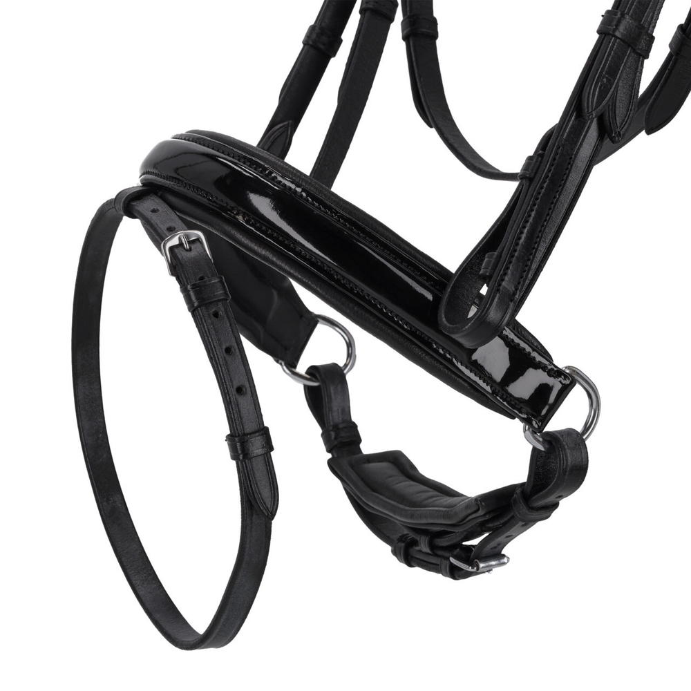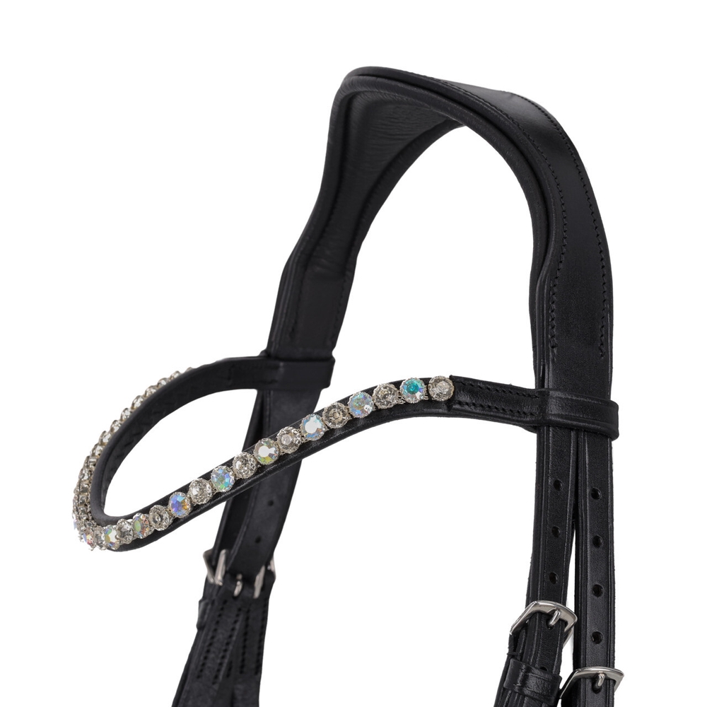 Sunset valjad lakknahast kapsliga ning anatoomilise, eriti laia kuklarihmaga, mis tagab hobusele optimaalse mugavuse. Kuklaosa väljalõige aitab vähendada survet kuklale, samas kui pehme polsterdus ja lõuapehmendus lisavad mugavust ning luksuslikkust. Otsmikurihm on kaunistatud säravate kivikestega ning kurgurihm on reguleeritav mõlemalt poolt.