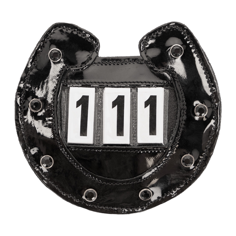 Hobuserauakujuline numbrihoidja on valmistatud lakknahast ja dekoreeritud kivikestega. Numbrihoidjat saab hõlpsasti valjaste või valtrapi külge kinnitada haaknõelte või krõpsuga. Vahetatavad numbrid on komplektis.