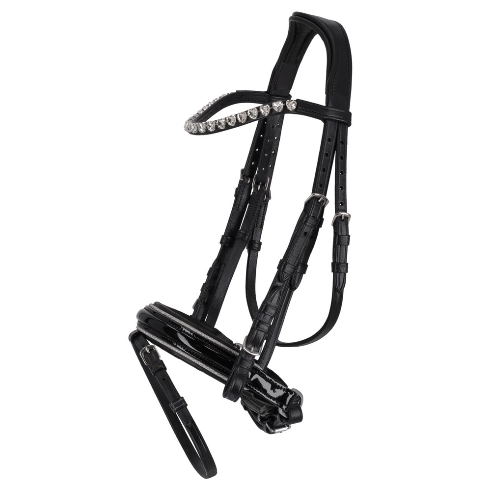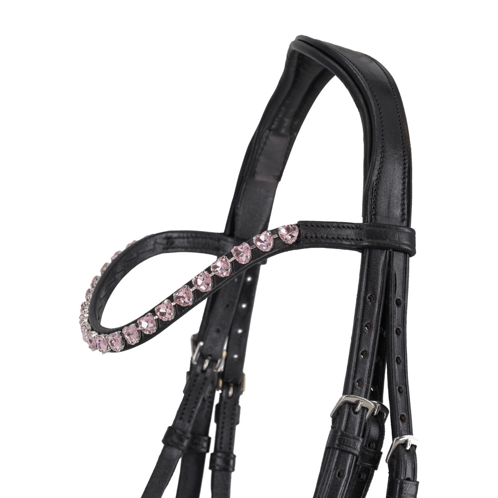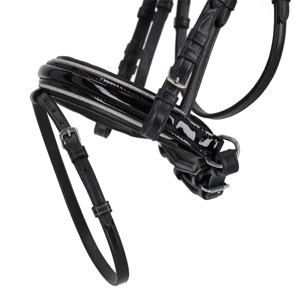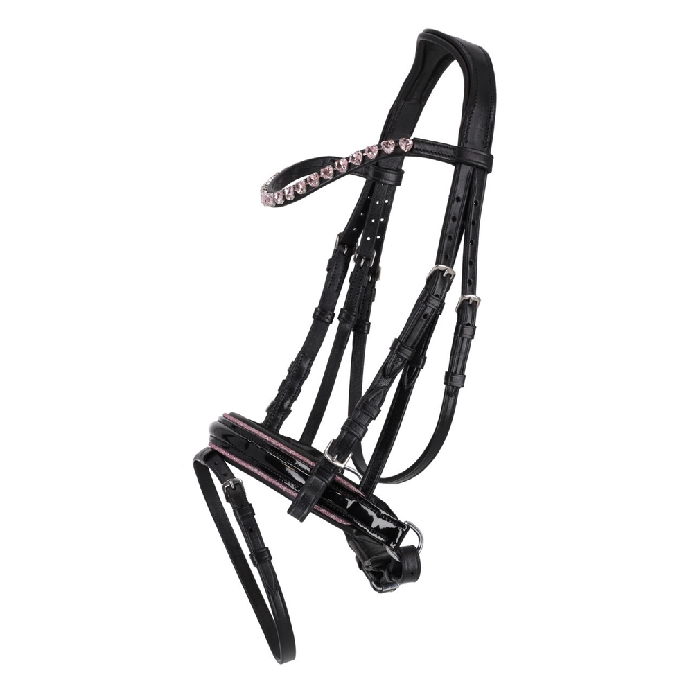 Need mustast nahast valjad on lakknahast kapsliga mida kaunistab tagasihoidlik sädelusega ääris. Kuklarihm, kapsel ja lõuarihm on pehmelt polsterdatud, et pakkuda lisamugavust. Otsmikurihm on kaunistatud südamekujuliste kivikestega, mis annavad valjastele elegantse ilme. Anatoomiliselt polsterdatud kuklarihm tagab ponile parema istuvuse ja suurema kandmismugavuse.