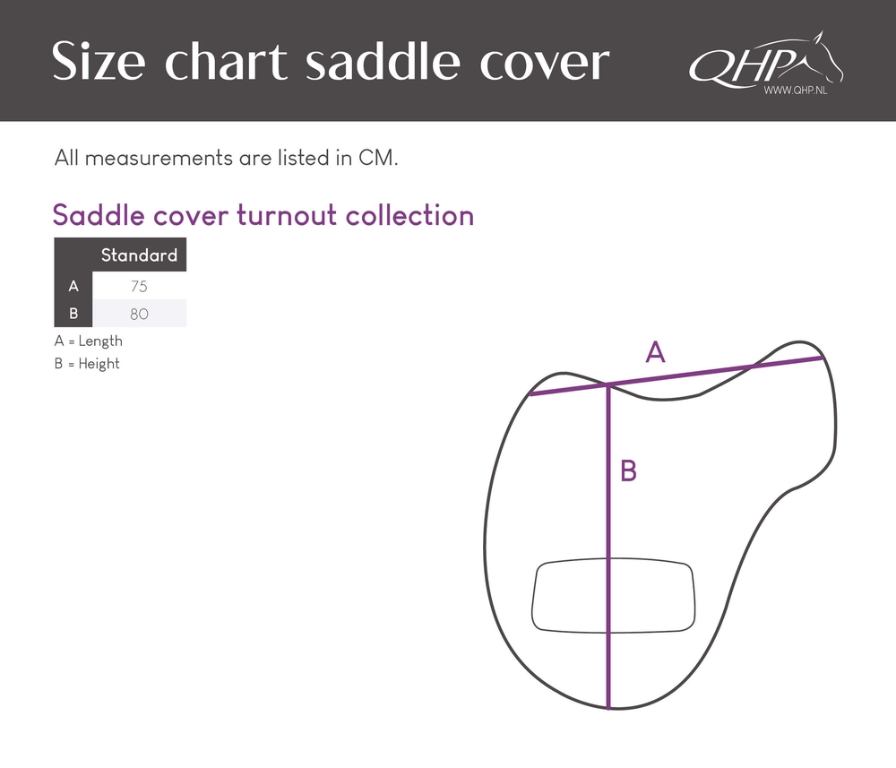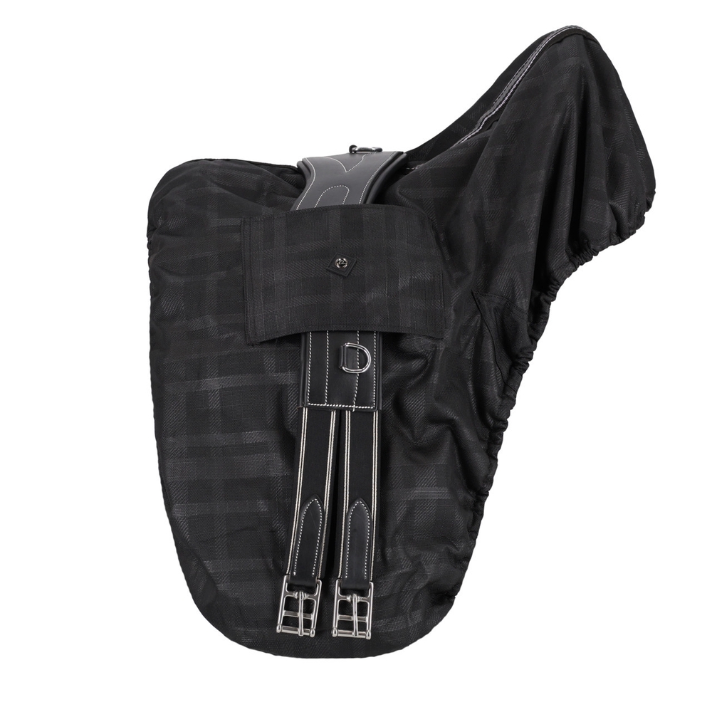 Fliisvoodriga vetthülgav sadulakate turnout-kangast. Suure suuruse tõttu sobib kate peaaegu igale inglise sadulale. Kummiga saab katet reguleerida vastavalt oma sadula suurusele. Kattel on kaks aasa, millesse saab sadulavöö asetada.